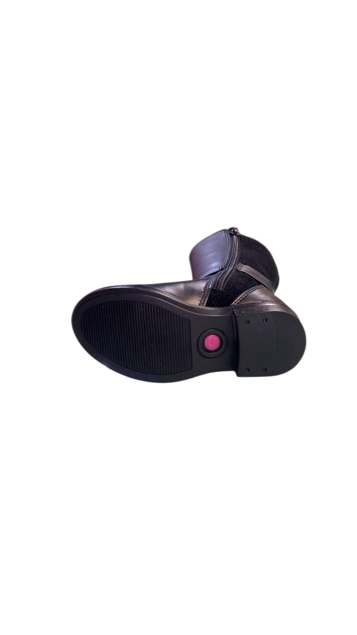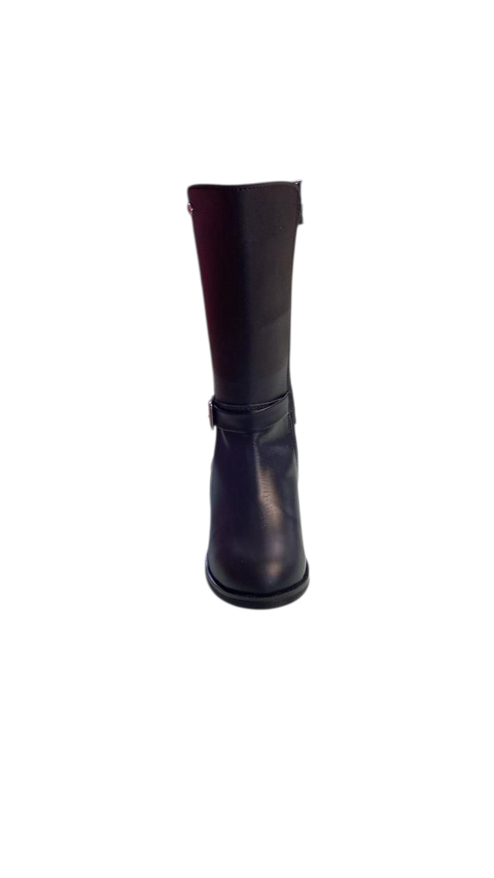 Bota larga para niña elaborada en piel, con broche decorativo a un costado y cierra al otro , suela antiderrapante.