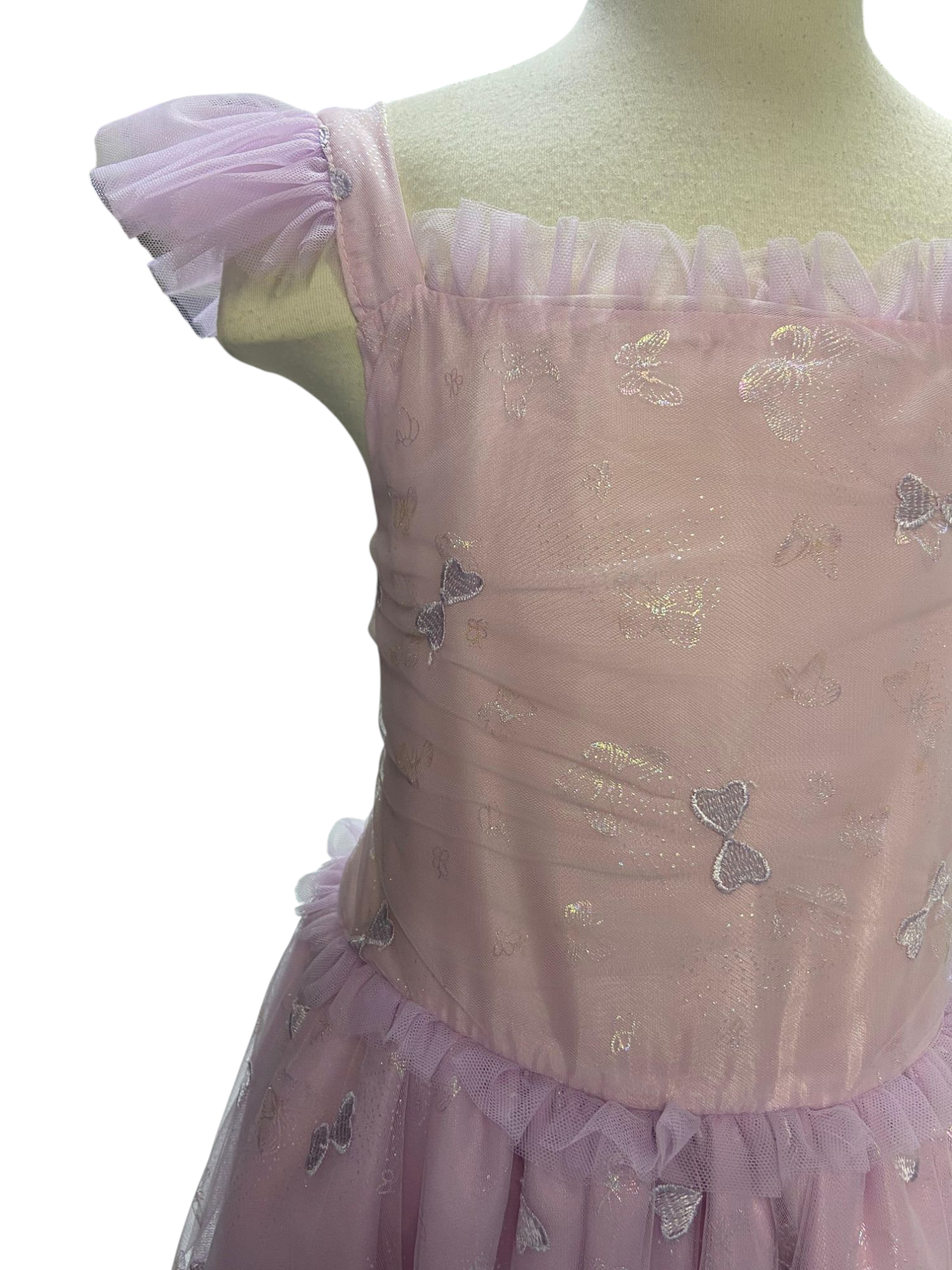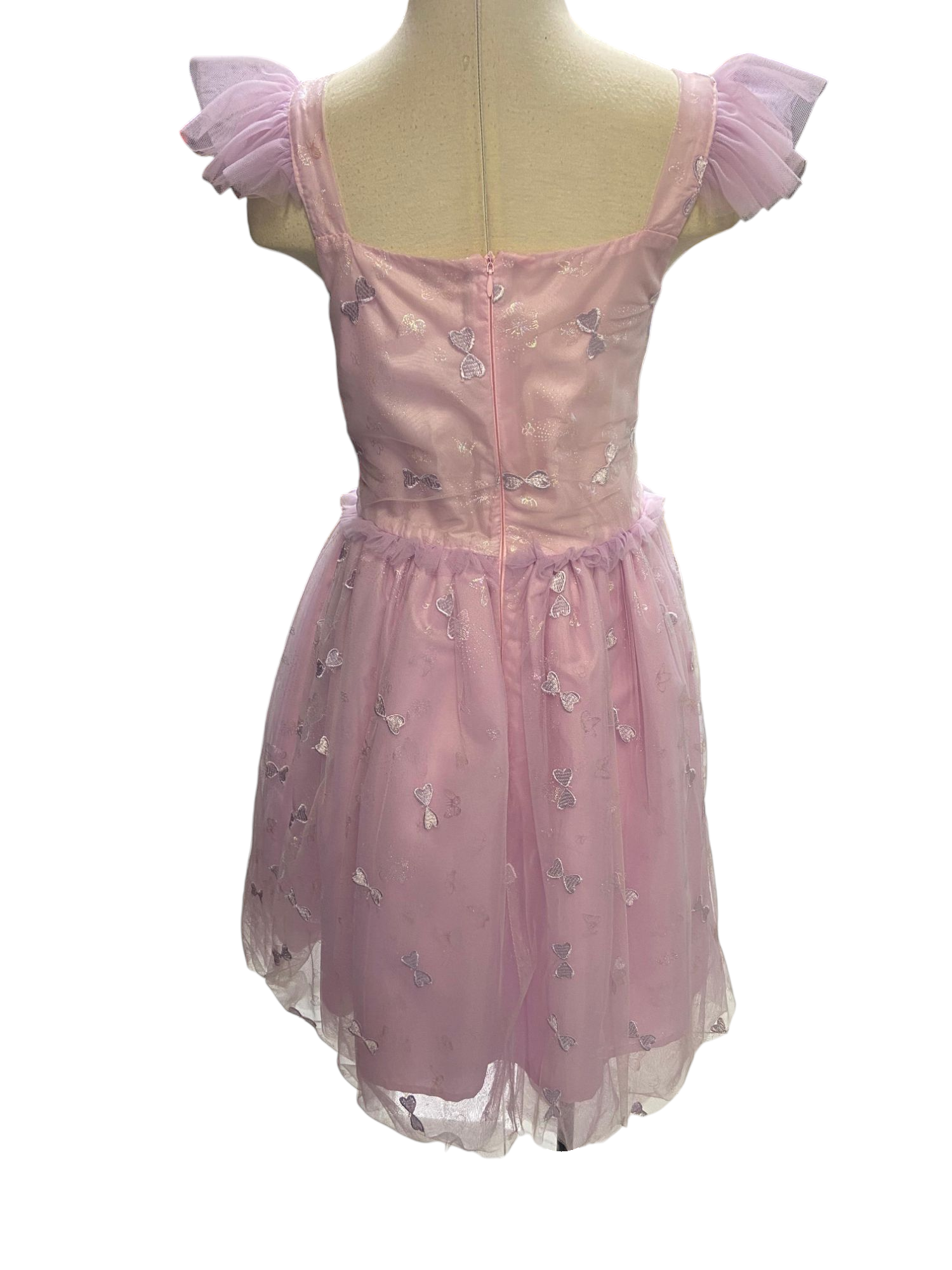 Vestido para niña , con diseño de monitos y tul. Cierre en la espalda