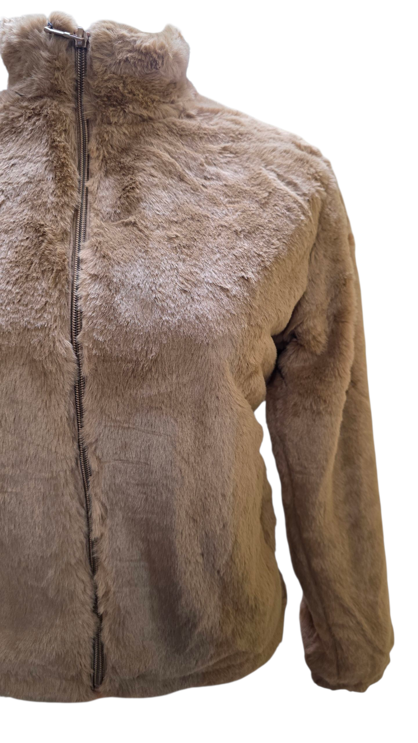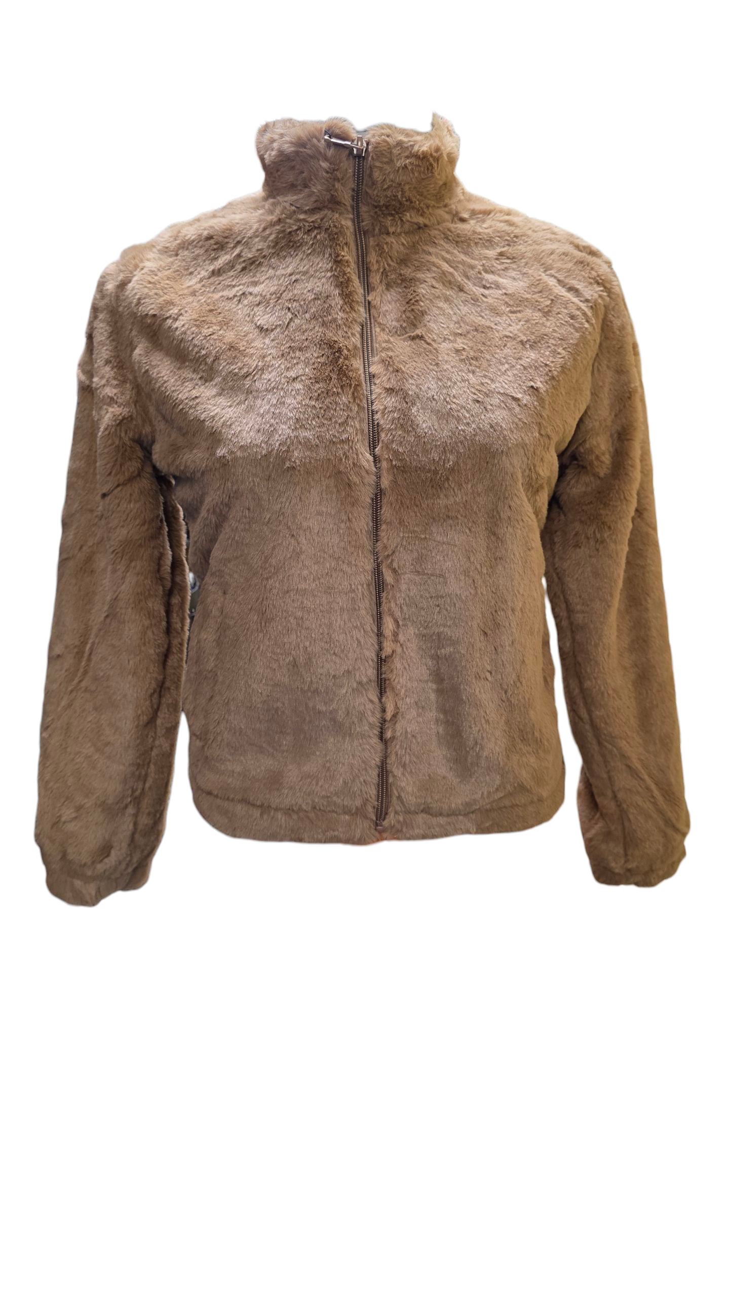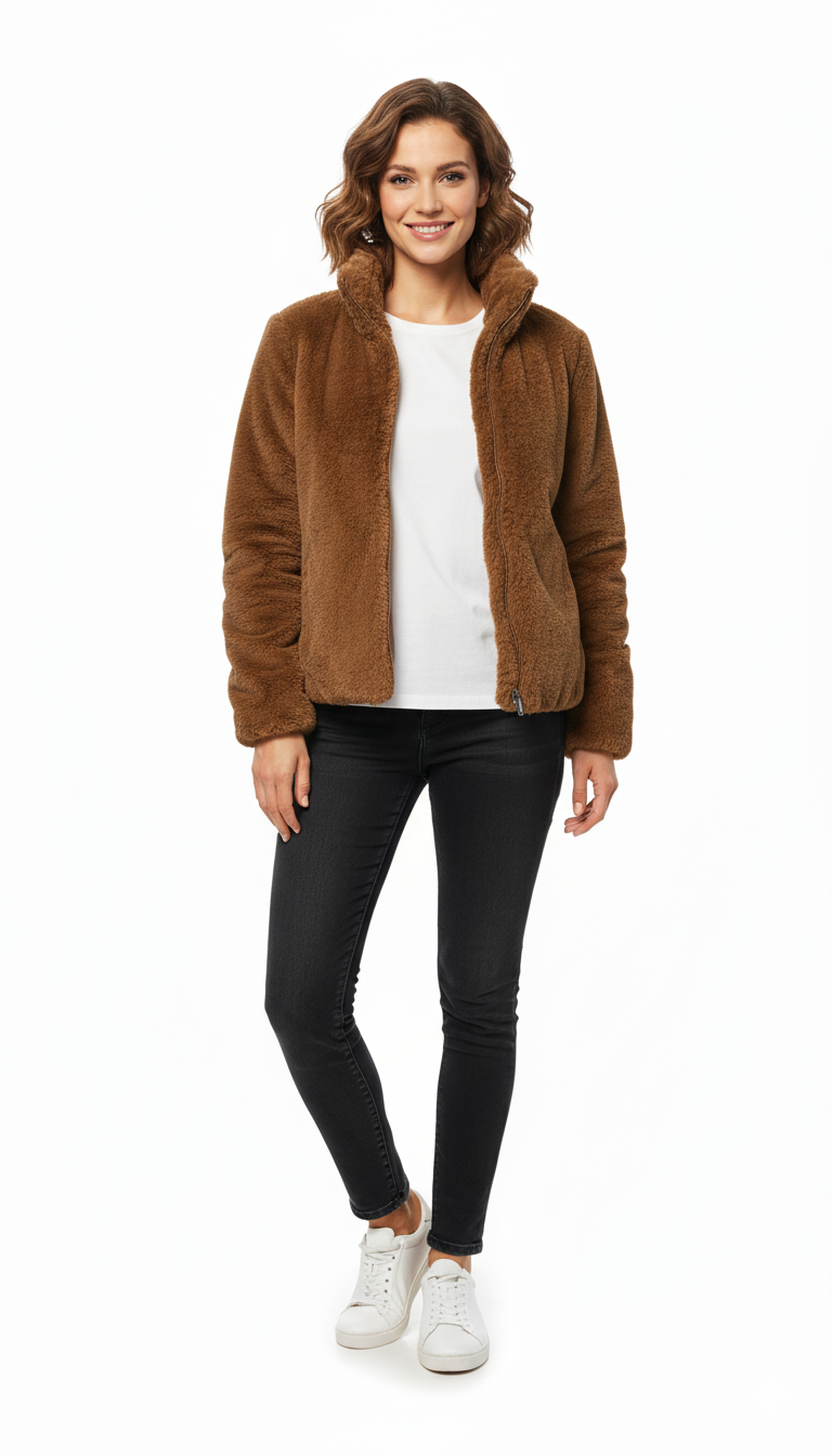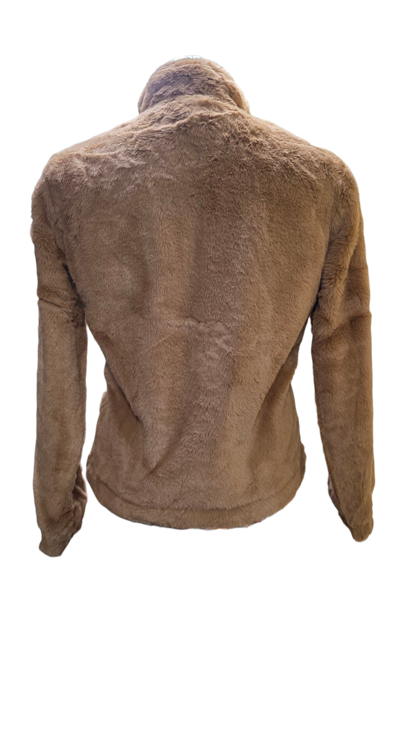 Chamarra de dama está confeccionada con 100% poliéster, textil cálido y duradero. Presenta cuello alto, una textura supersuave tipo peluche y bolsillos funcionales, así como un ajuste por medio de cremallera.