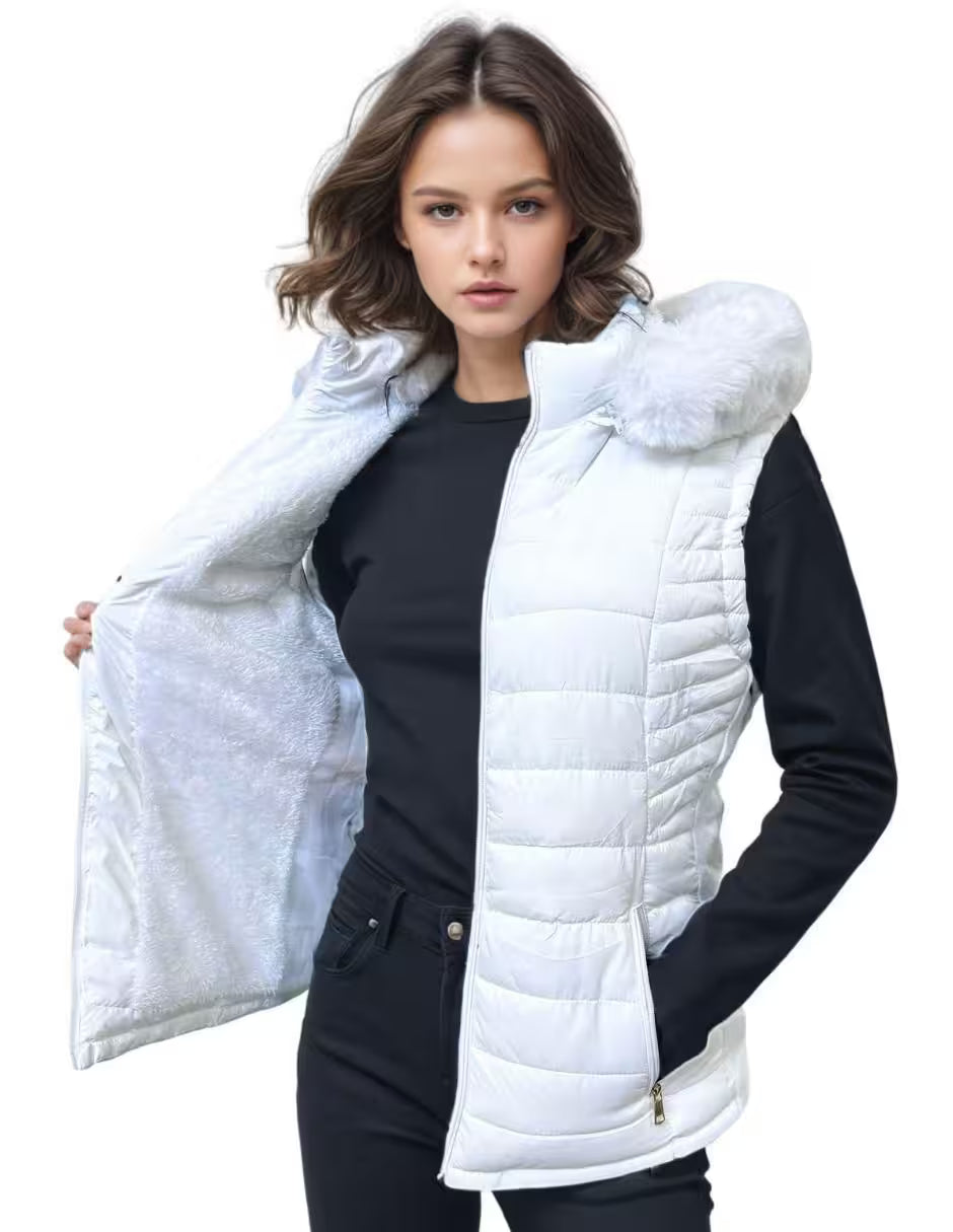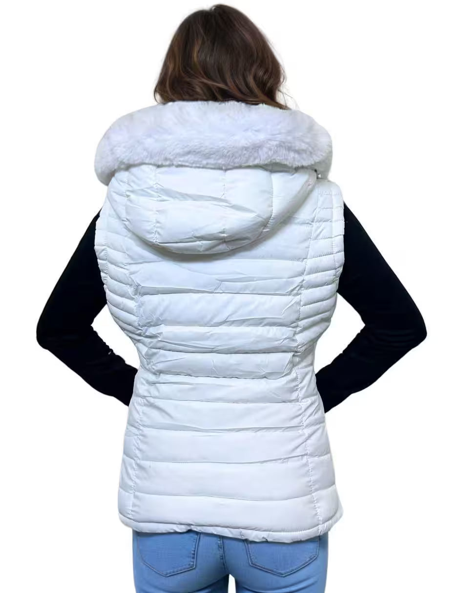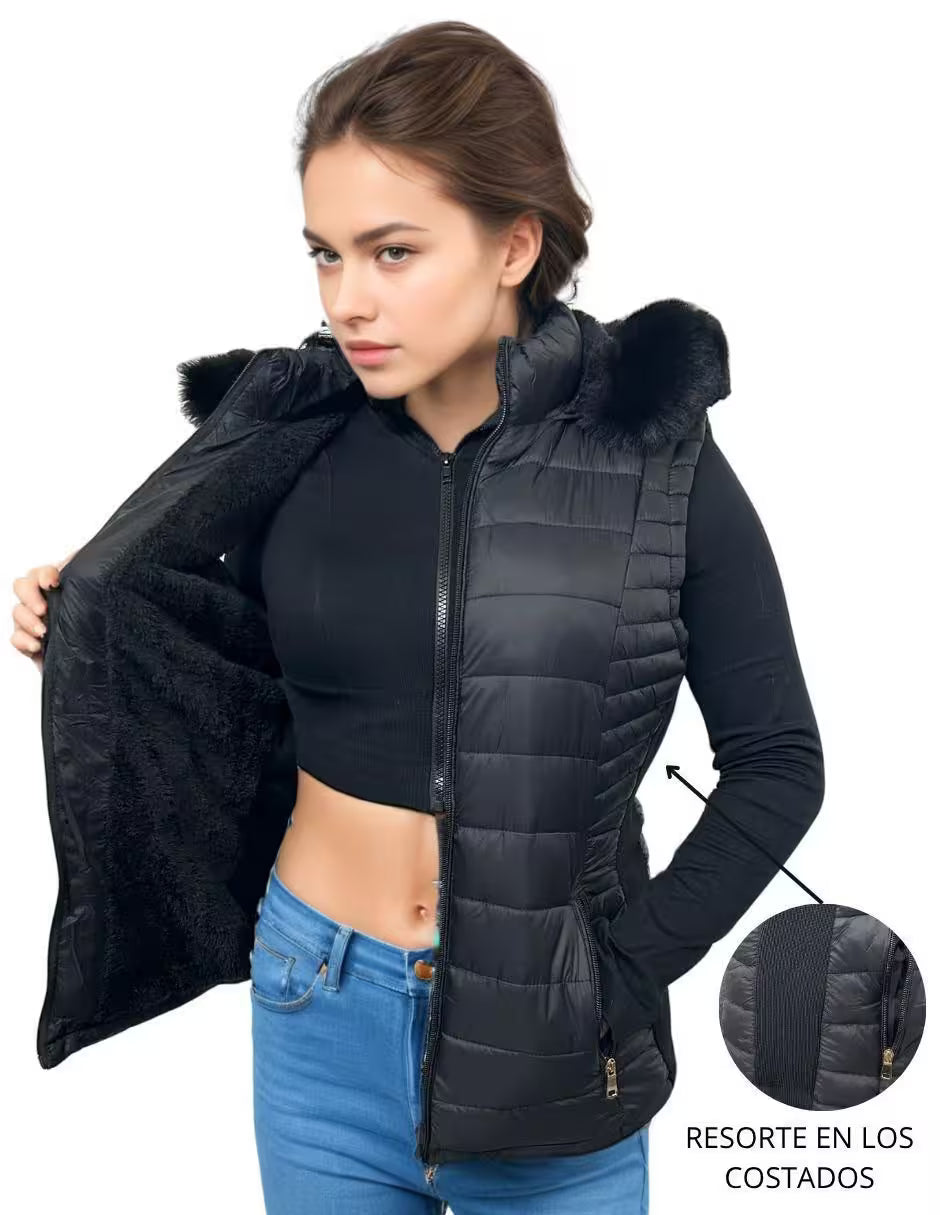 Chaleco de dama de la marca Polo con gorro desmontable y resorte en los costados
