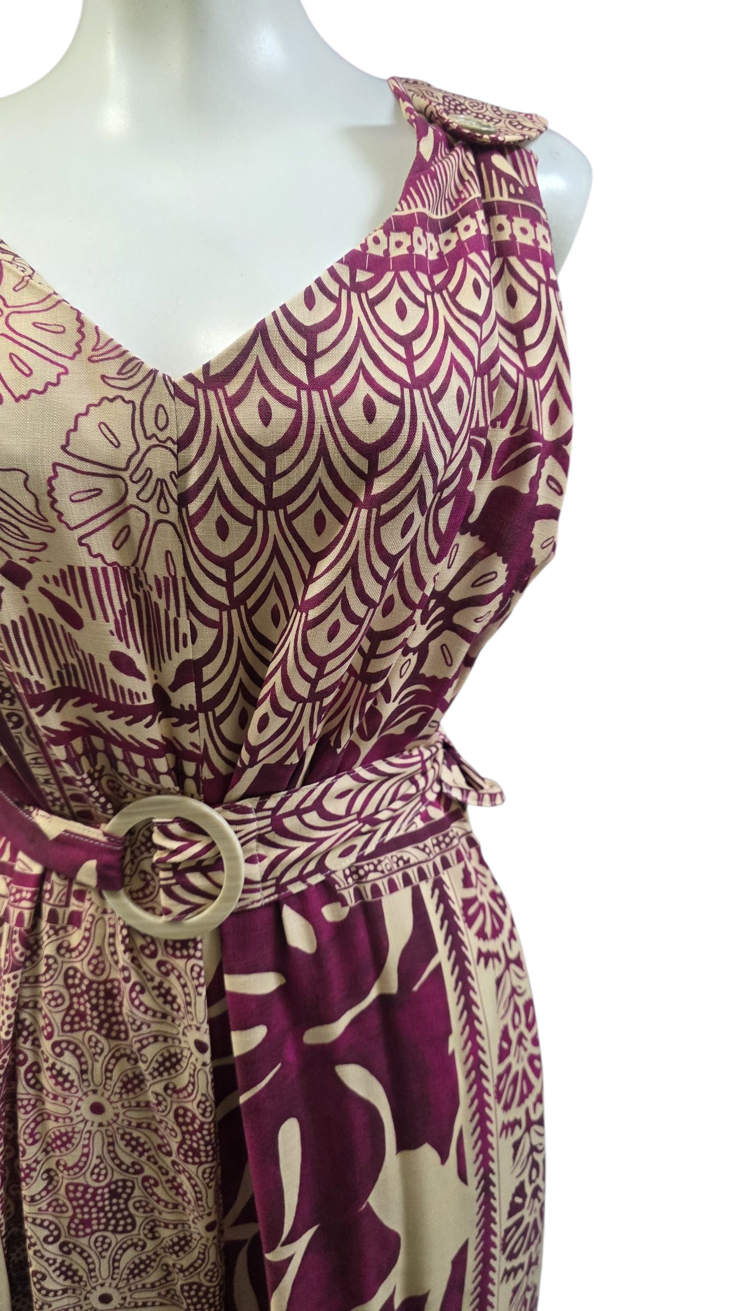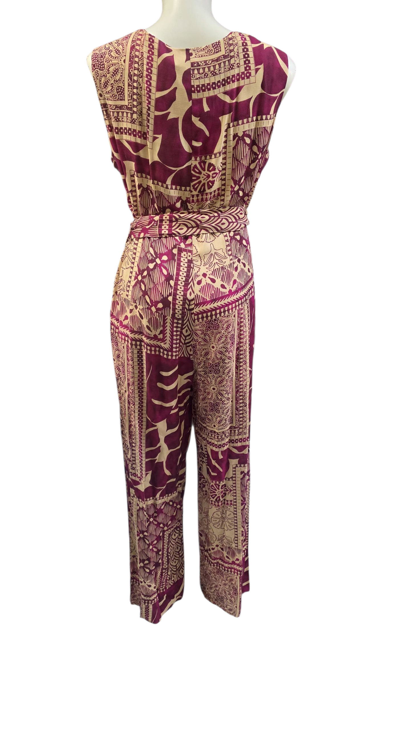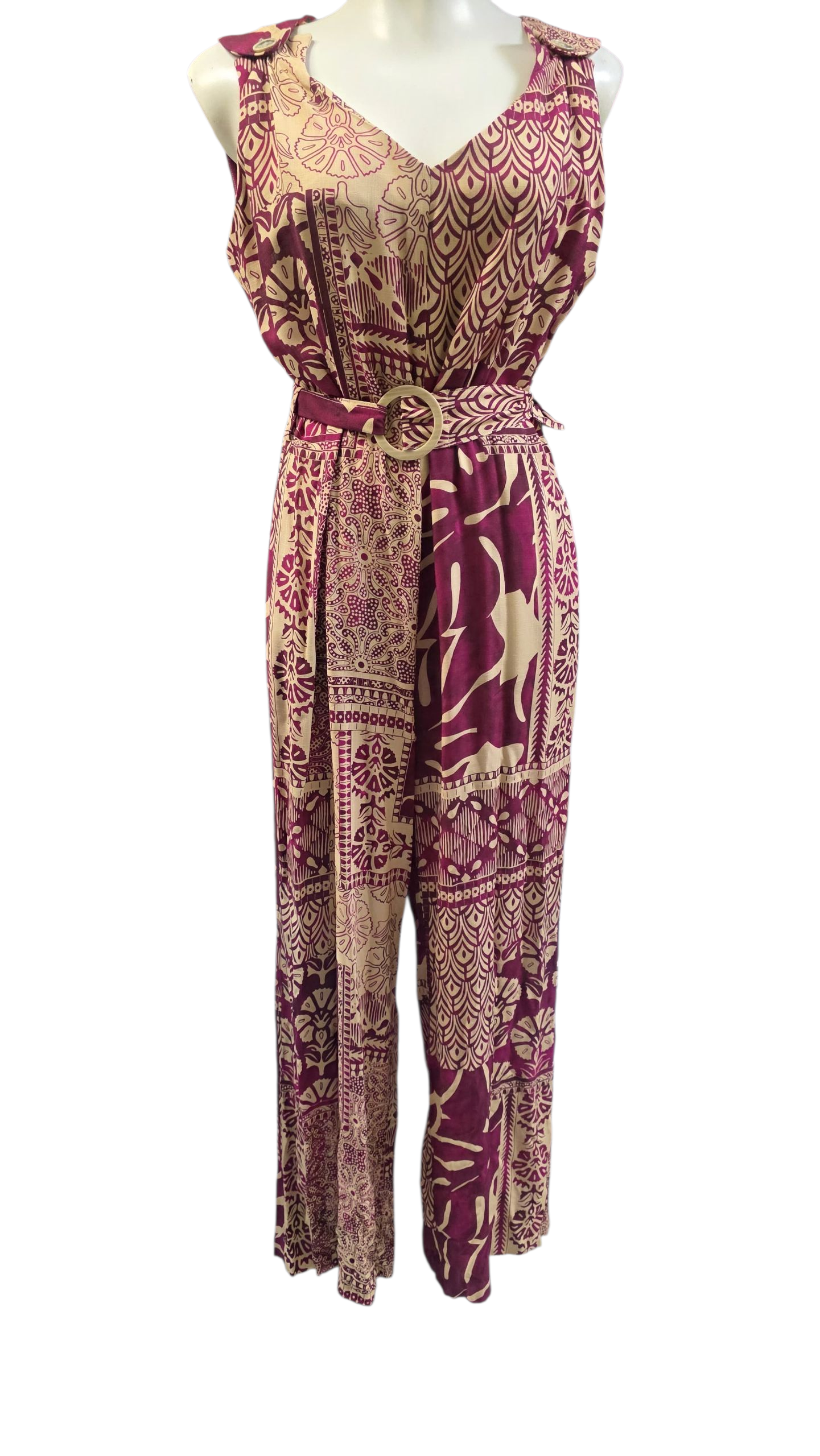 Jumpsuit para dama , con botones en los hombros , cuello V y cinta a juego .