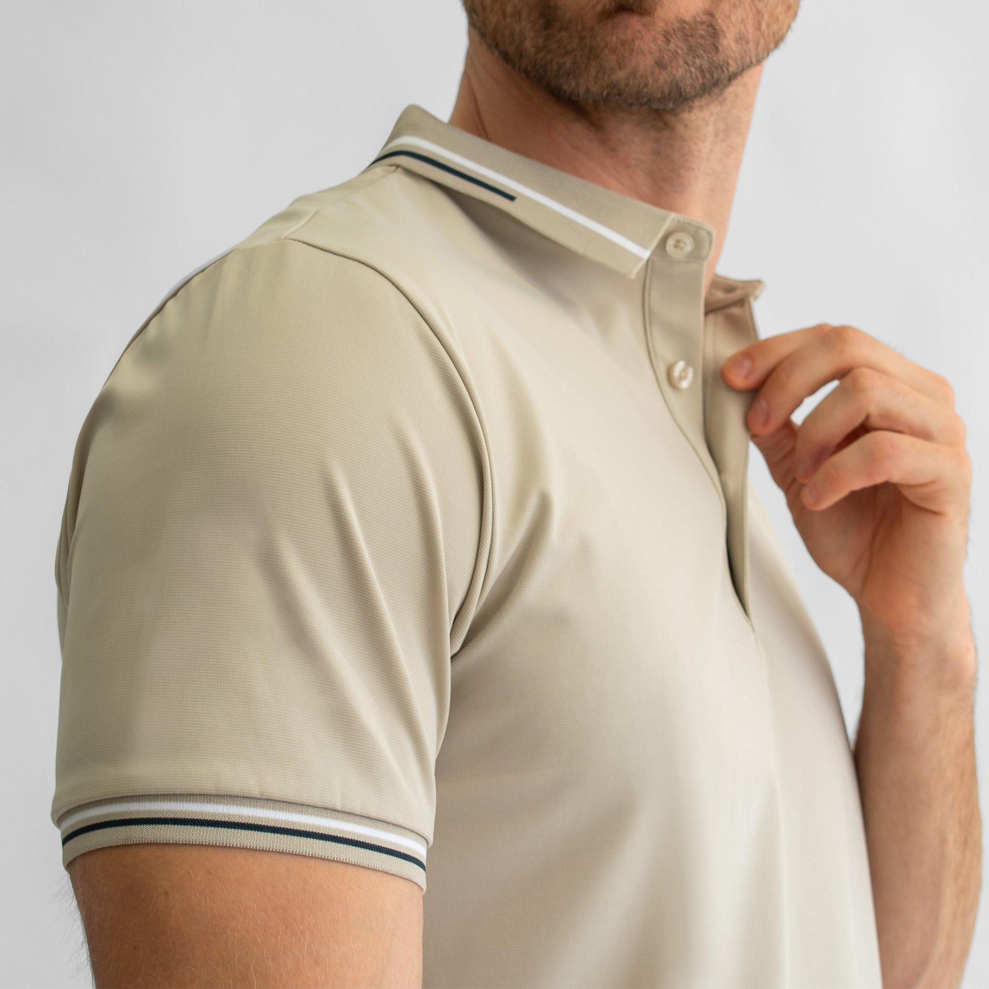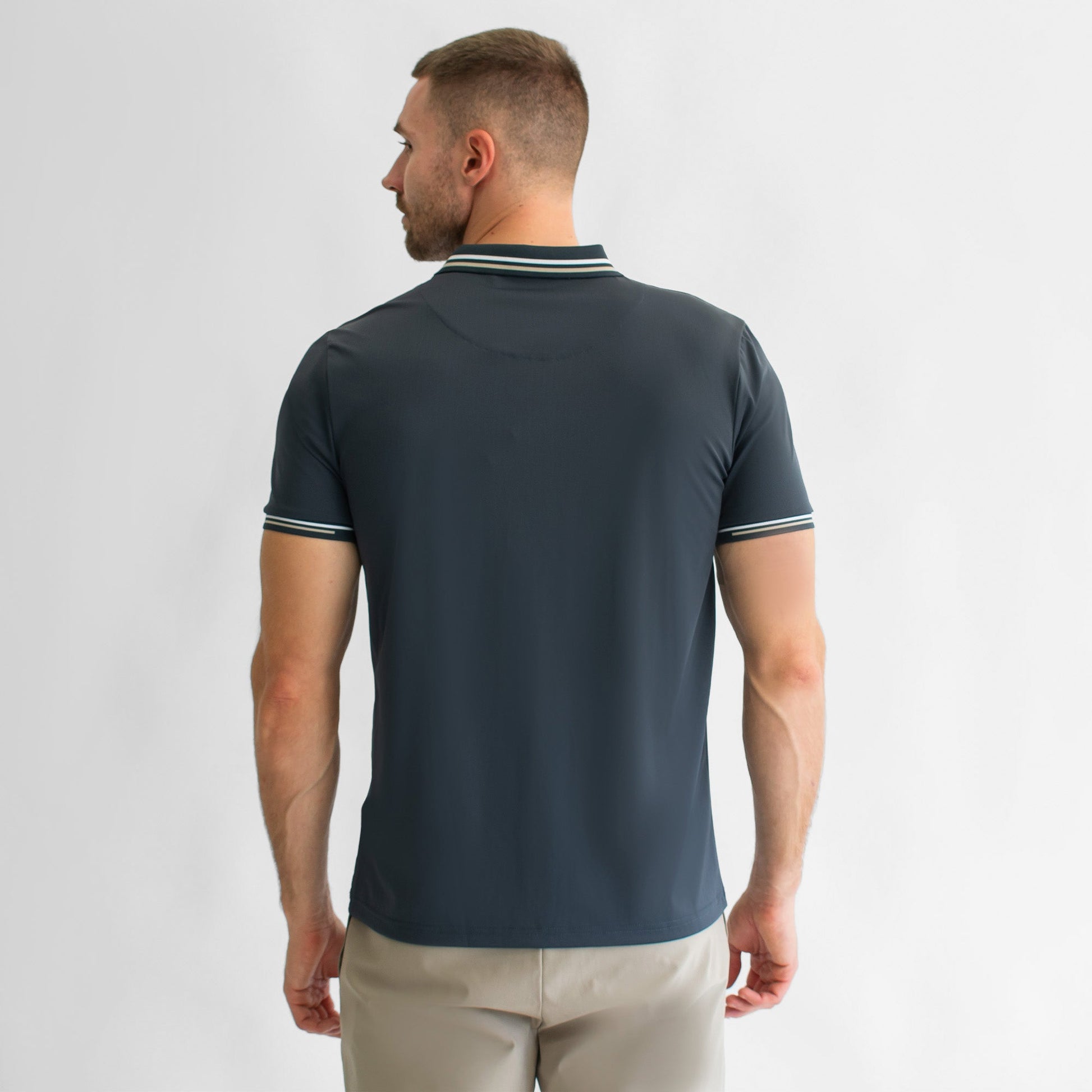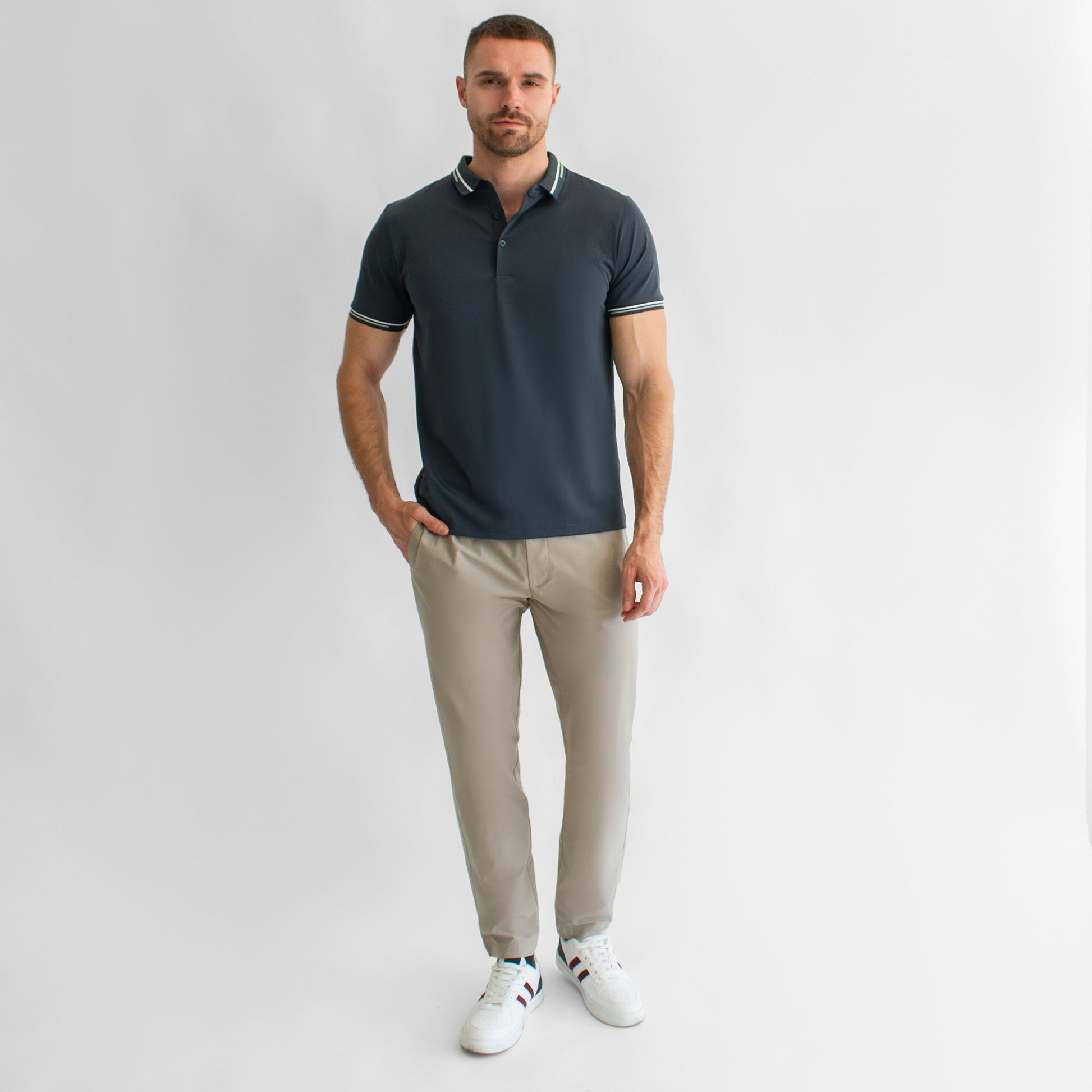 Playera tipo polo de corte regular fit, confeccionada en tejido suave de fácil cuidado. Presenta cuello y puños tejidos en contraste de color, que aportan un acento moderno a una silueta clásica. Ideal para un estilo casual con carácter y un toque de diferenciación.