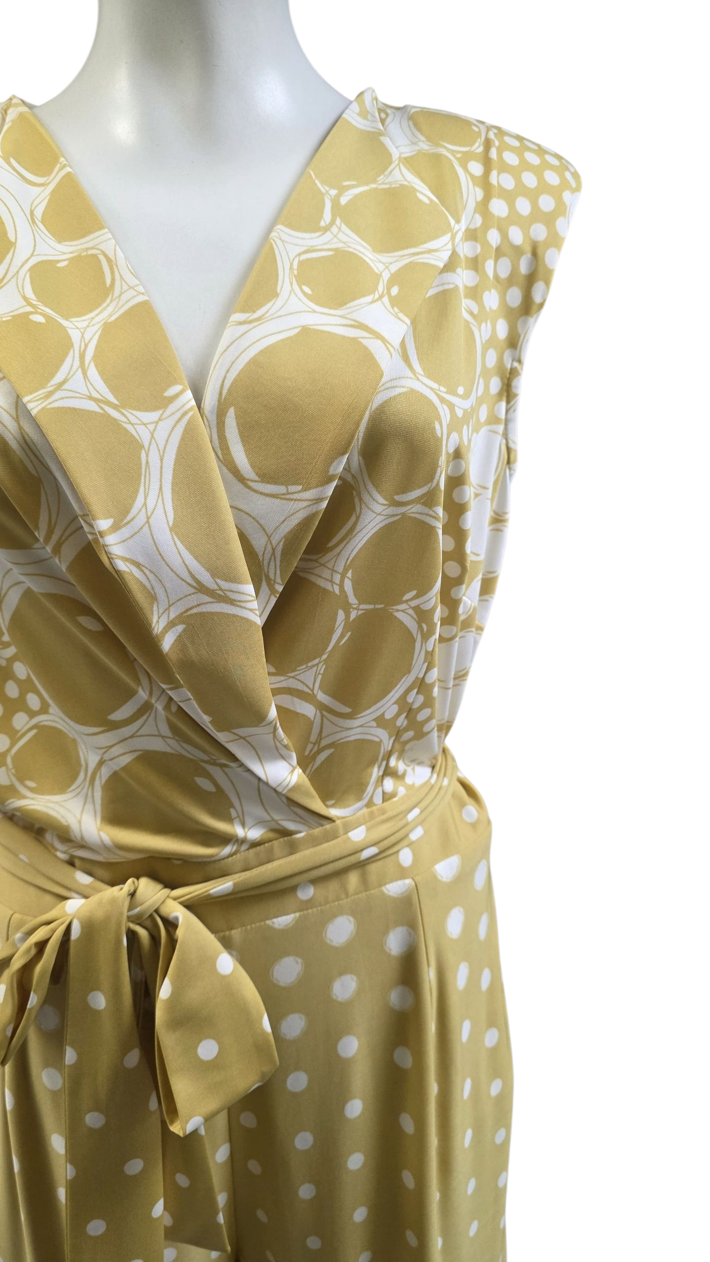 Palapzo para dama sin mangas , en cuello V, cierre oculto lateral y cinta a juego .