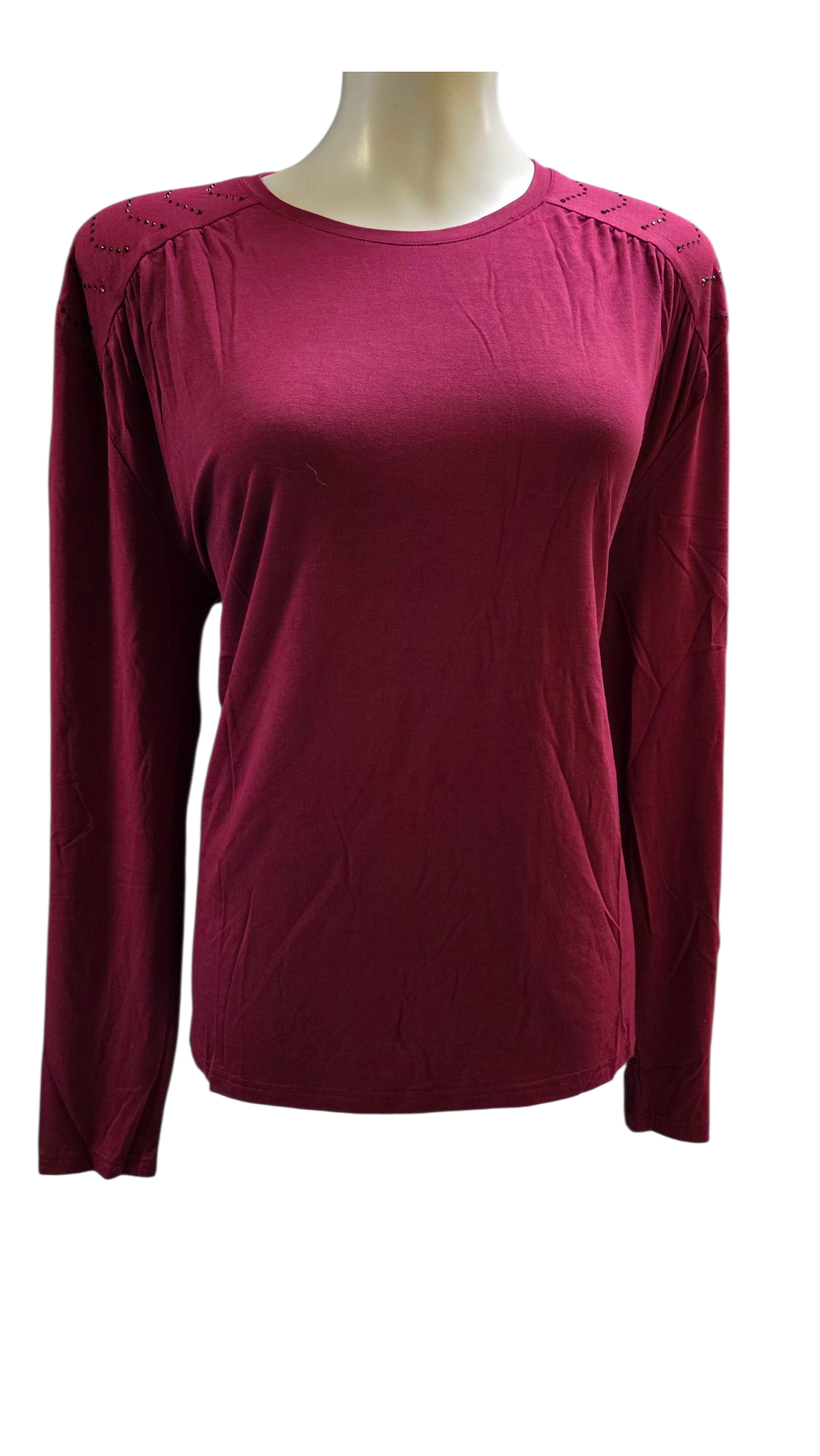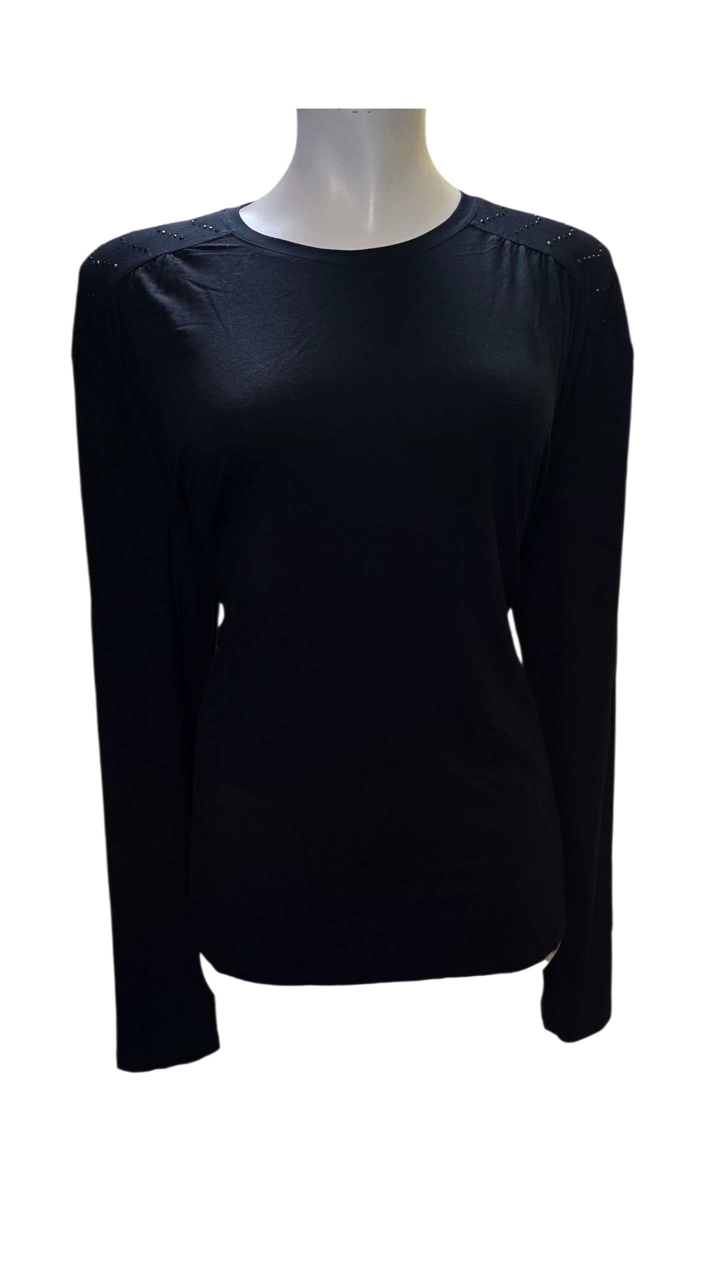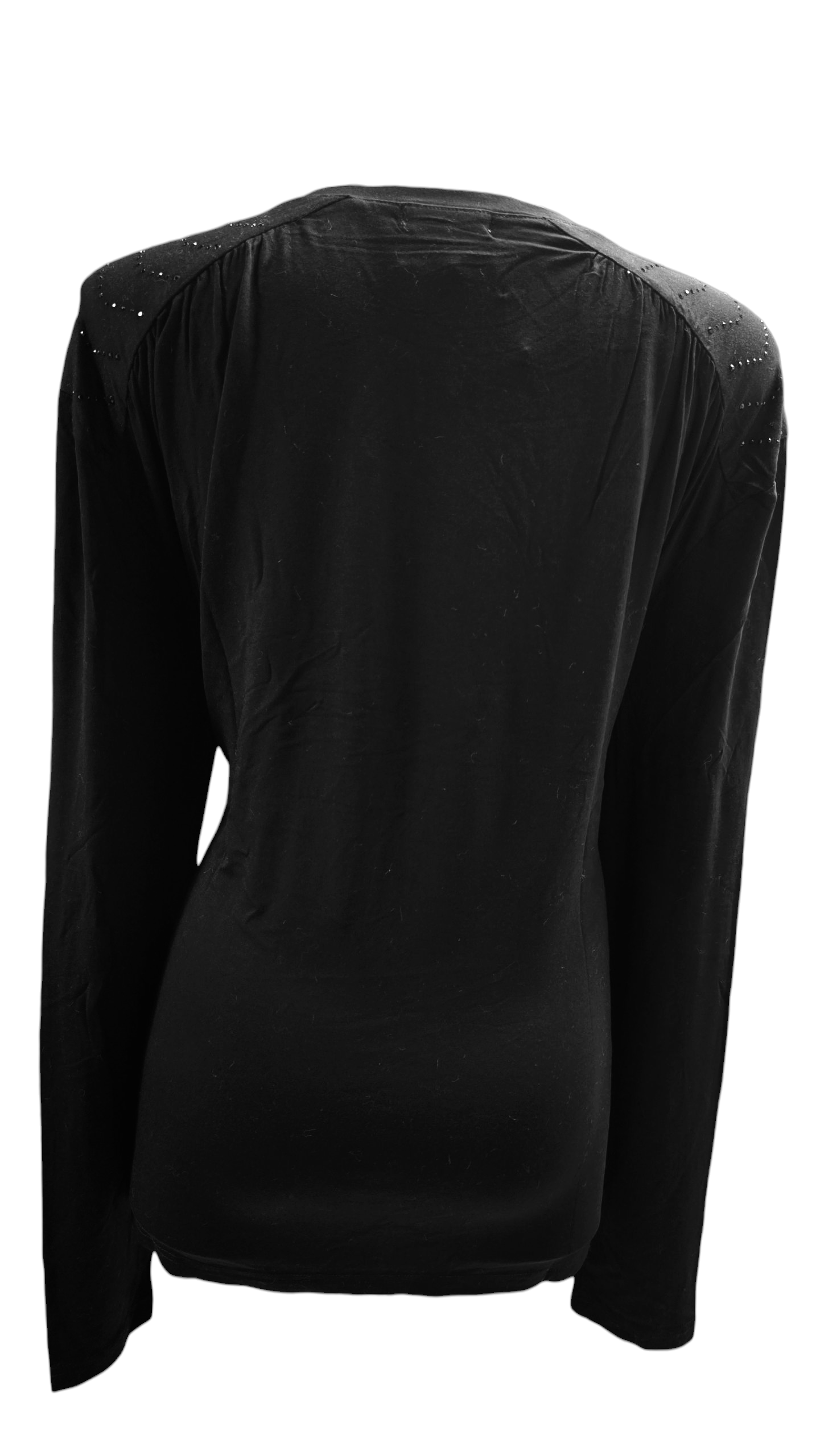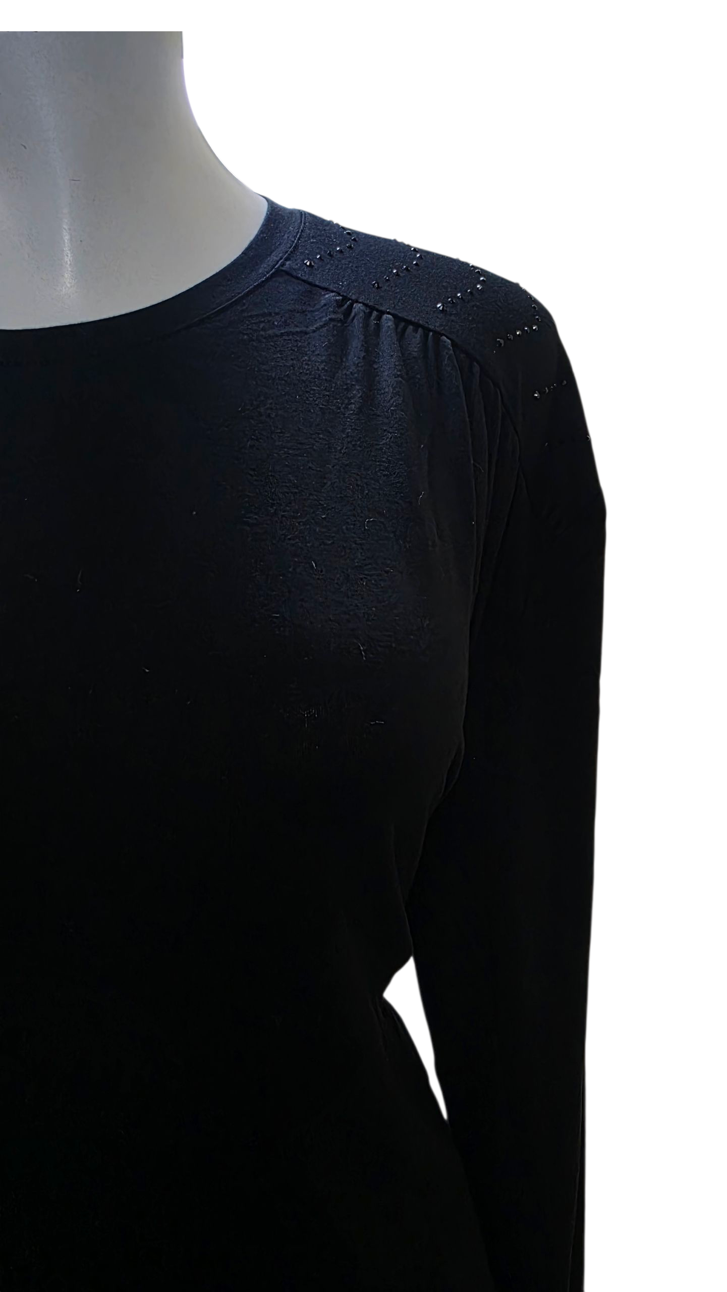 Blusa lisa para dama en manga larga con detalles de brillos en los hombros