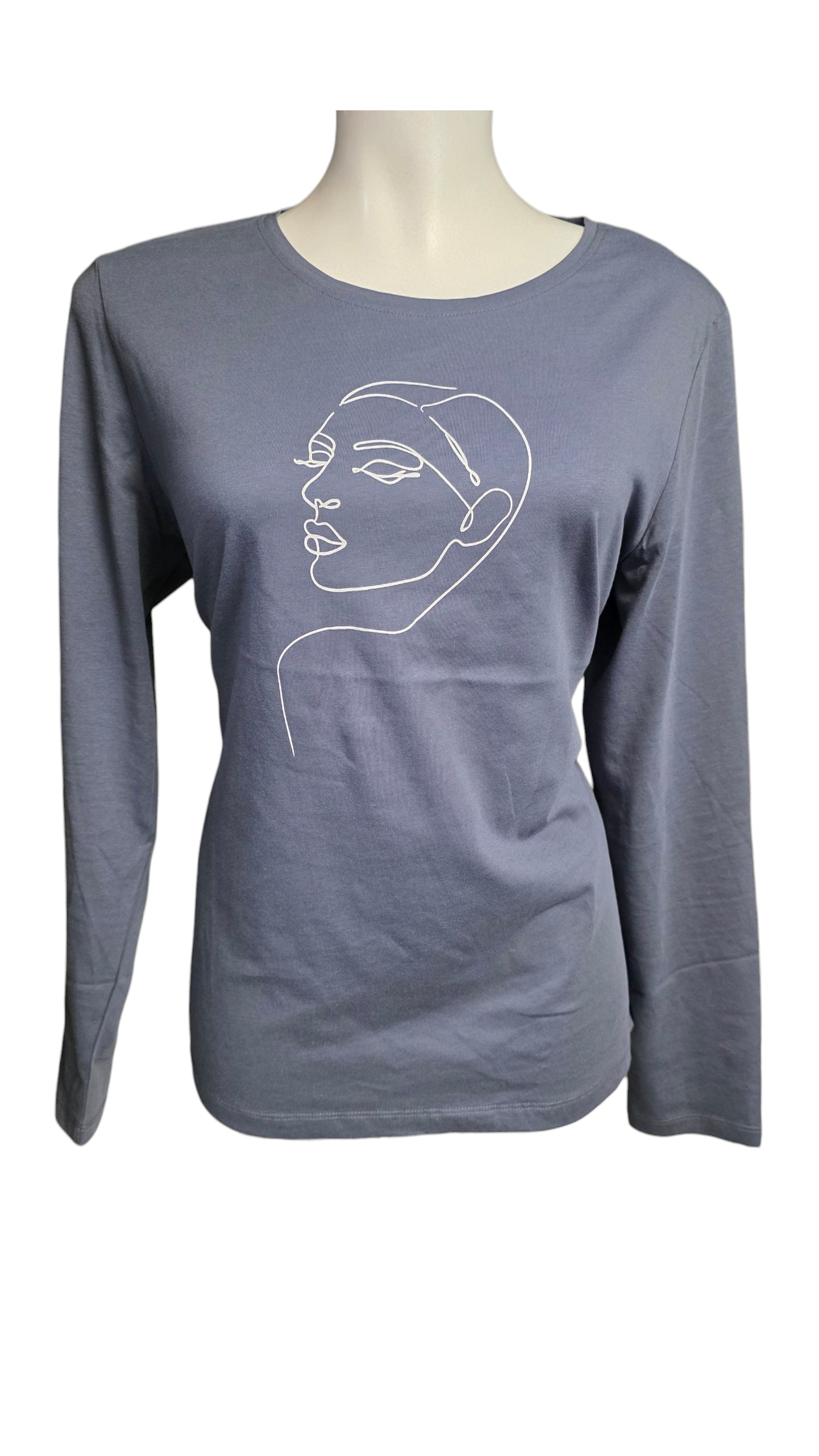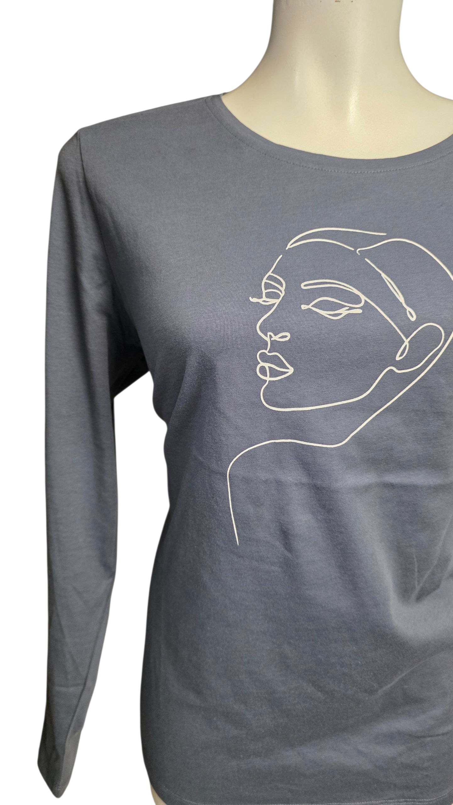 Blusa para dama en manga larga con detalle de estampado en el pecho , cuello redondo